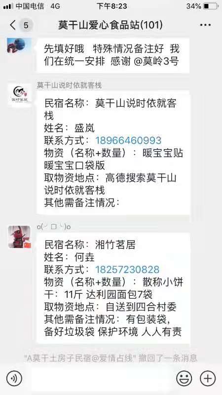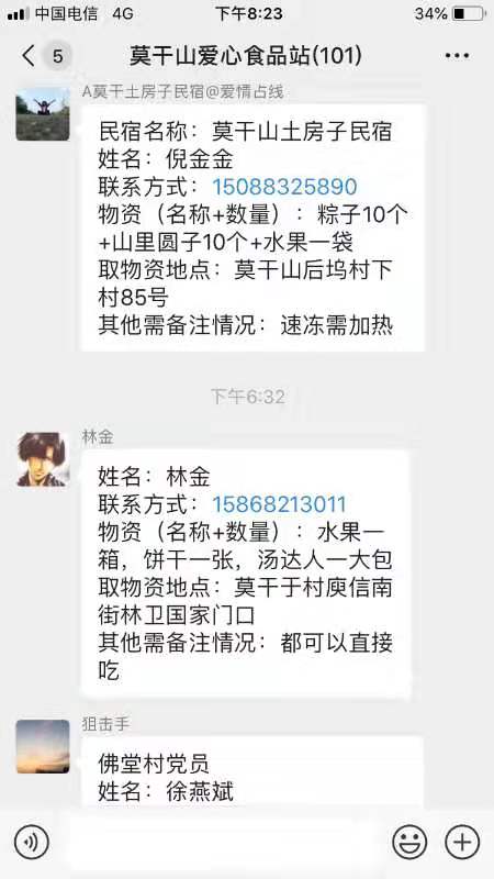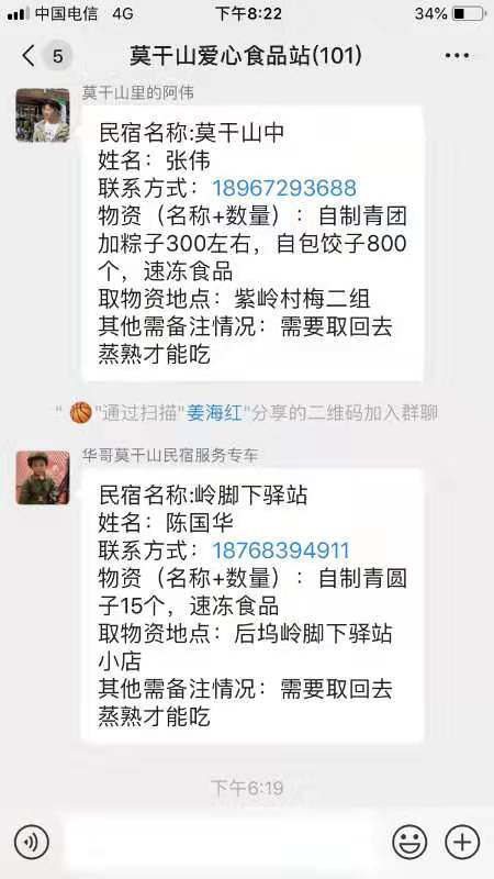 抗疫號召發(fā)出后,民宿主們在響應(yīng)的同時,沒忘掉身邊那些一線防控人員,德清縣莫干山鎮(zhèn)有許多設(shè)置的是24小時值守的露天卡口,其條件較為艱苦,大年初一時,民宿行業(yè)協(xié)會牽頭組建了“莫干山愛心食品站”群,專門對 nocturnal值班人員開展物資運(yùn)送組織工作。