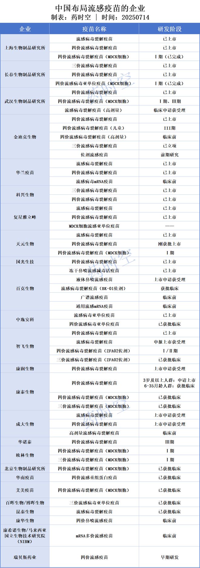中國的情形存在著顯著差異。2025年所呈現(xiàn)的批簽發(fā)數(shù)據(jù)表明,華蘭生物、長春所、科興等候企業(yè)的雞胚四價滅活疫苗所占比例超出了85%。百克生物的鼻噴減毒活疫苗盡管已然上市,然而適用人群僅僅限定于3至17歲?;贛DCK細(xì)胞的流感疫苗依舊處于臨床早期階段,重組蛋白疫苗還沒有獲批的先例。