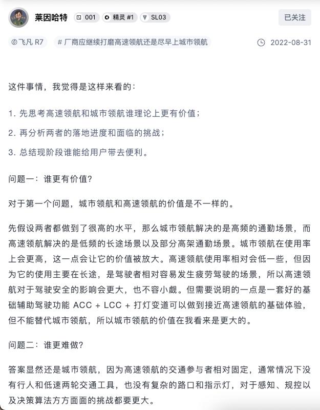 一方支持盡早呈上那城市領航,此項支持的關鍵內(nèi)核邏輯在于,憑借于城市范疇之內(nèi)所積攢出的各類繁雜路況情形的數(shù)據(jù),借此去提升擴增廠商所具備的技術層面抵御外人輕易攻破的屏障。城市當中這道路之上所含有的行人,以及非機動車輛,還有那些形狀并非規(guī)則劃一的路口,其復雜程度遠遠超越高速路段,而率先成功達成順暢運行的城市領航,能夠構(gòu)建起數(shù)據(jù)能自行循環(huán)閉合的狀態(tài),進而反過來滋養(yǎng)回饋整個輔助駕駛的系統(tǒng)。