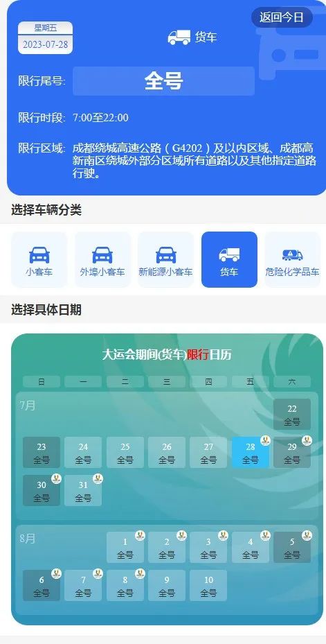 小客車若為外地牌照,要是確實(shí)有來成都的需求,得以提前于網(wǎng)上申請(qǐng)“臨時(shí)通行碼”,經(jīng)批準(zhǔn)后才可依規(guī)上路。此外,在7月22日至8月10日期間,貨車以及工程運(yùn)輸車,于每日早7點(diǎn)至晚10點(diǎn)這一時(shí)段,于限行區(qū)域內(nèi)同樣被禁止行駛。