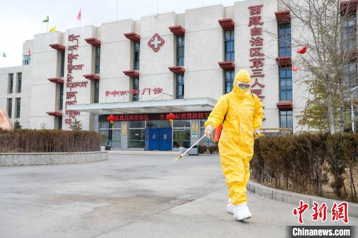在2020年2月的時候西藏自治區(qū)的第三人民醫(yī)院里醫(yī)生們身著防護服背著消毒桶于病房、走廊以及急診室之間來回地進行噴灑。拍攝由何蓬磊完成的那張照片之中消殺人員的身影將那段距離拉得悠長地面全部呈現(xiàn)為濕的狀態(tài),對于這樣一些情況他們知曉一旦病毒突破進入后果會比之于平原顯得更為嚴重。