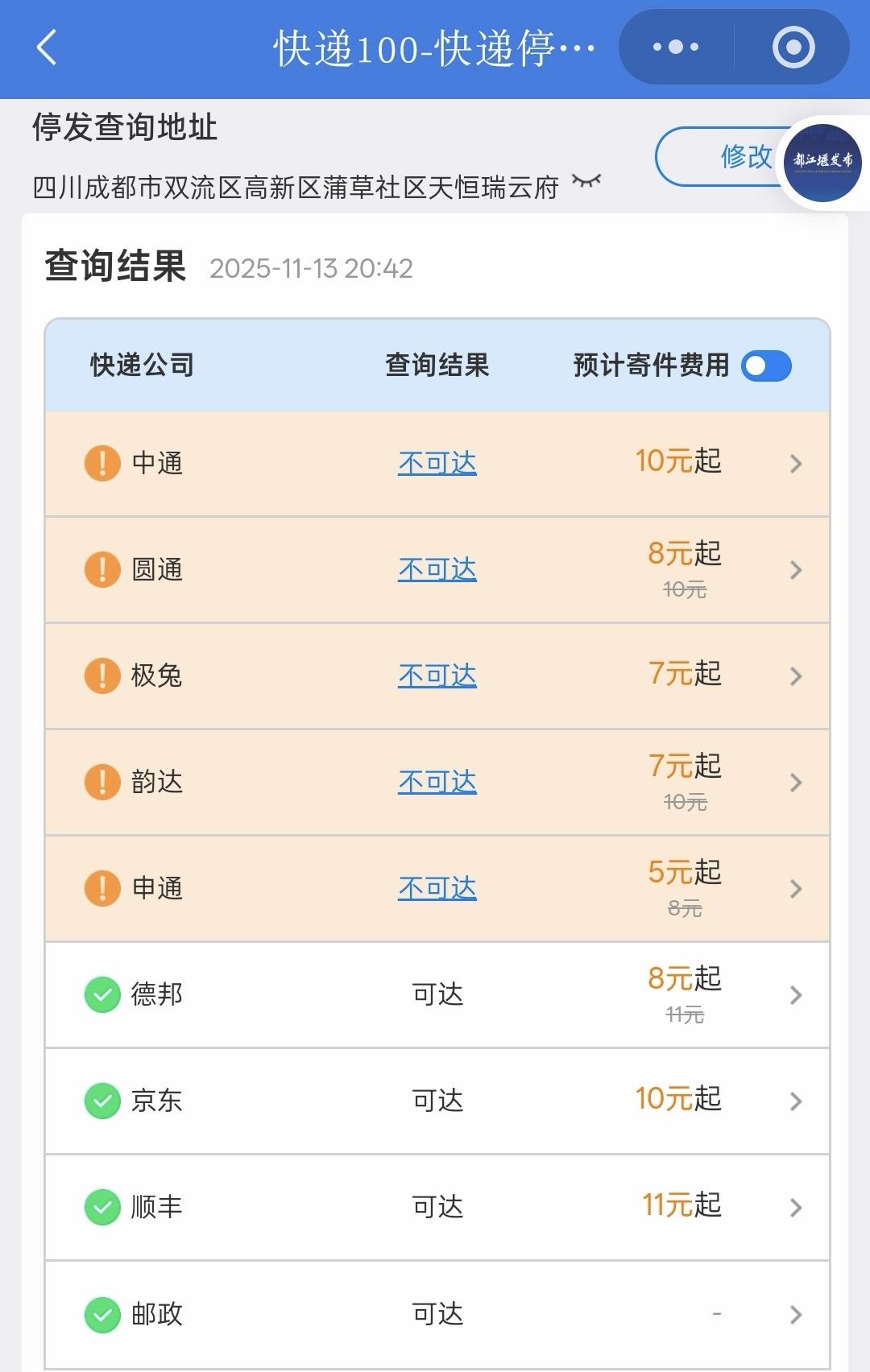 并非只中通這一家如此,記者去走訪探尋后獲悉,申通、韻達(dá)等好些快遞公司都已然停止了對(duì)瑞云府以及周邊傲云天府、新川華府等好多小區(qū)的配送服務(wù),于快遞100小程序上去進(jìn)行查詢時(shí),這些快遞公司已然顯示沒(méi)辦法送達(dá)至該小區(qū),商家在消費(fèi)者進(jìn)行網(wǎng)購(gòu)之際也會(huì)主動(dòng)去告知沒(méi)法送達(dá)。