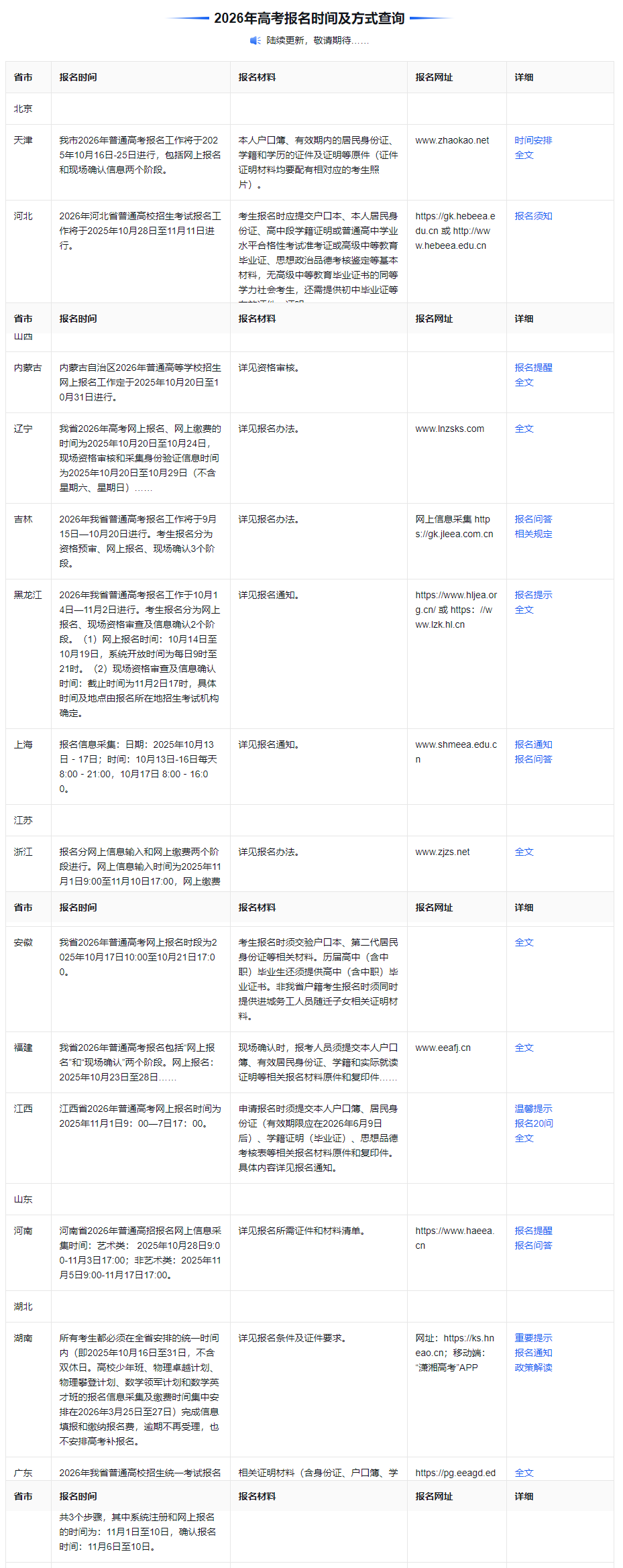 全國(guó)多地報(bào)名時(shí)間已定