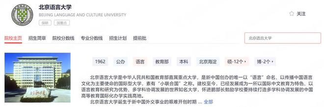不同于985院校,北京語言大學(xué)并非211院校,然而它卻是教育部直屬院校,而且是唯一一所以語言來命名的高校,其建校的初衷在于教授外國(guó)人學(xué)習(xí)中文,到如今已經(jīng)發(fā)展成為國(guó)際中文教育與外語王牌并重的復(fù)合型強(qiáng)校,在它的校園里有一半人員是留學(xué)生,使得國(guó)際化氛圍十分濃厚。