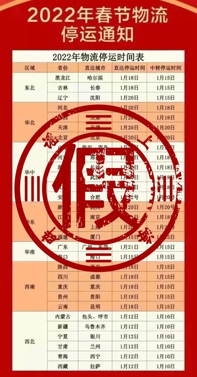每年臨近春節(jié)的時候,“快遞停運(yùn)”這樣的謠言就如同能定時爆炸的炸彈那般,于朋友圈里轟然爆開。今年的情況也并非有所不同,一張被稱作“1月15日全國快遞停運(yùn)時間表”的東西,在承德人的微信群當(dāng)中瘋狂流傳,致使大家內(nèi)心惶恐不安,趕忙往購物車?yán)锾砑幽曦洝?墒钦嫦嗑烤故鞘裁茨兀肯葎e急著去下單,先看看官方實(shí)實(shí)在在的證據(jù)之后再做決定也不算晚呀。