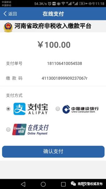 最后的那一步便是進(jìn)行支付罰款的操作了,頁面將會(huì)跳轉(zhuǎn)至選擇繳款渠道的界面,該界面支持通過微信、支付寶或者銀行卡來進(jìn)行支付,從中挑選你覺得最為順手的方式,點(diǎn)擊“確認(rèn)支付”之后依照提示去操作就可以了。