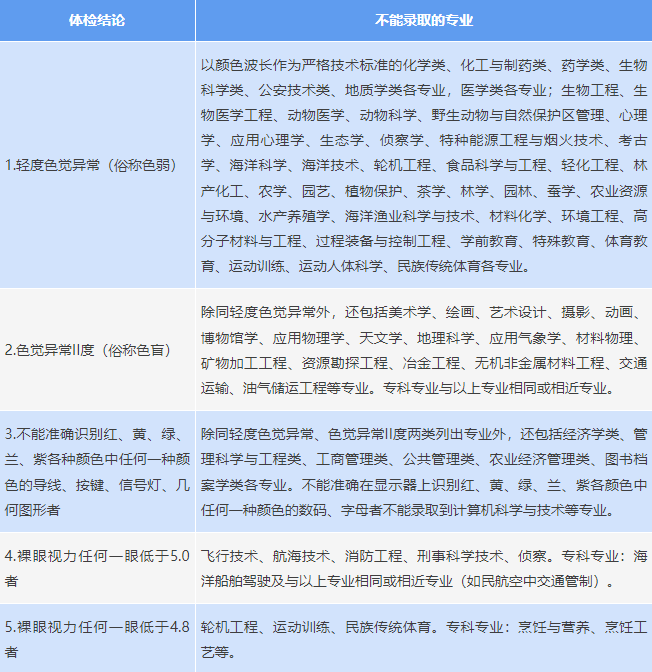 體檢得出的結(jié)論一般會(huì)劃分成幾種情形:一種情形是“不合格”,高校是可以不予以錄取的,這是針對(duì)那些患有嚴(yán)重心臟方面疾病以及重癥結(jié)核等病癥的考生而言的,這些考生需要先去進(jìn)行治療;另一種情形是“合格受限”,有的專業(yè)高校是能夠不錄取患有這類情況的考生的,比如說色覺存在異常問題的考生就不可以報(bào)考醫(yī)學(xué)類專業(yè),對(duì)于這一部分考生來說要格外留意去避開相關(guān)專業(yè)。