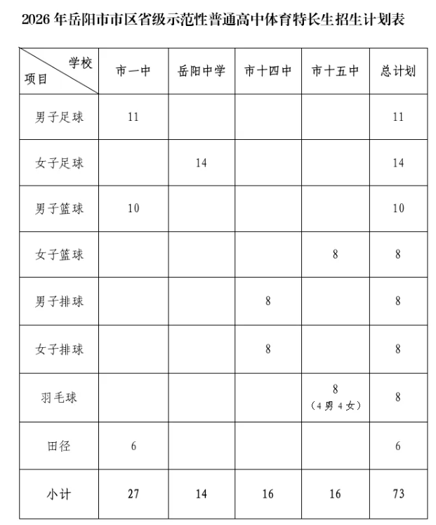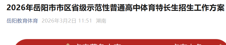 2026年岳陽市區(qū)省級示范性高中體育特長生招生方案公布