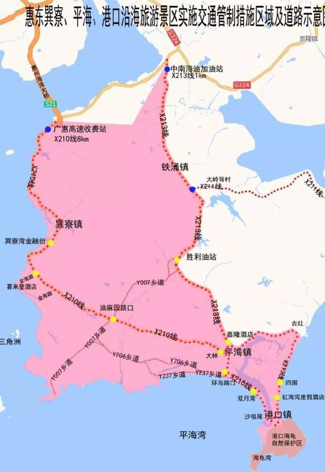 那些熱門景點(diǎn),像是巽寮灣、雙月灣,它們?nèi)幱谙扌蟹秶?。要說詳細(xì)的劃分,包含縣道X210線從8km起到42km的那段路,還有縣道X213線從1km到35km的那段區(qū)域,再加上與其周邊相關(guān)的所有道路。在進(jìn)入景區(qū)之前,務(wù)必要看仔細(xì)自身車輛的車牌。