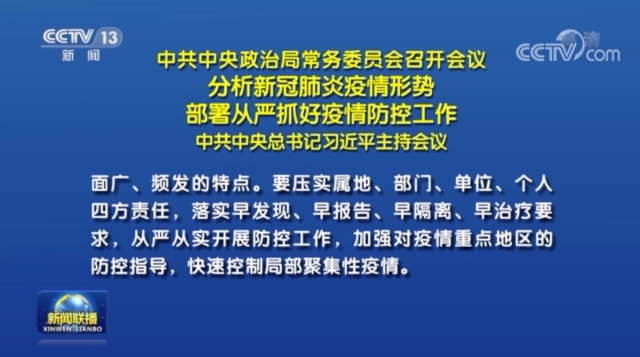 中共中央政治局常務委員會會議聚焦新冠肺炎疫情防控形勢